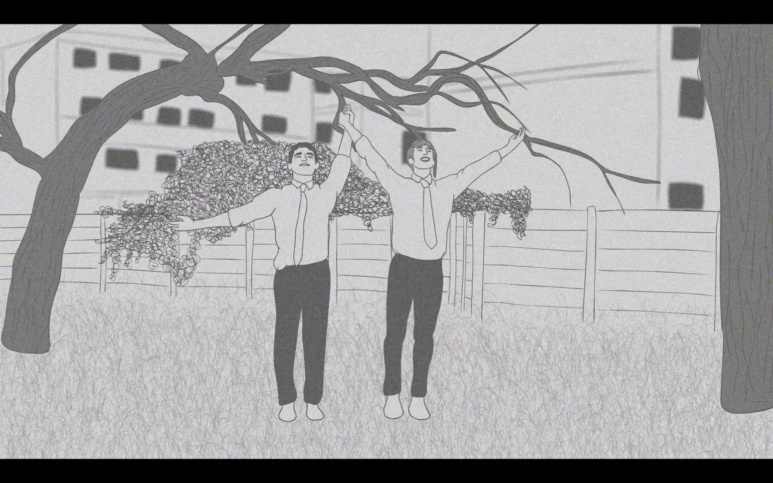 His collaborator Azhari is an animator and director whose film The Magic Boat was nominated for Best British Short Animation at the 2020 BAFTA Awards. Azhari’s medium is rotoscope animation, which involves tracing over live-action footage frame by frame, a technique he brings to Breathless Puppets. By taking the immediacy of dance and painstakingly retracing each gesture, the film speaks to the contradictions and possibilities of cross-disciplinary collaboration, the power of movement and the joy of creative connection.