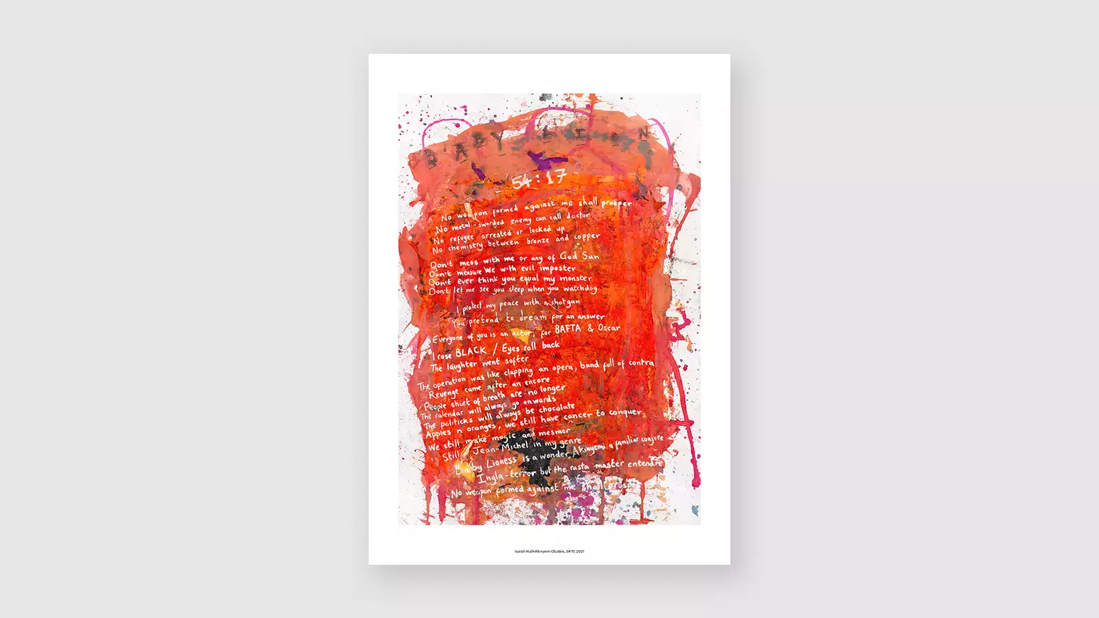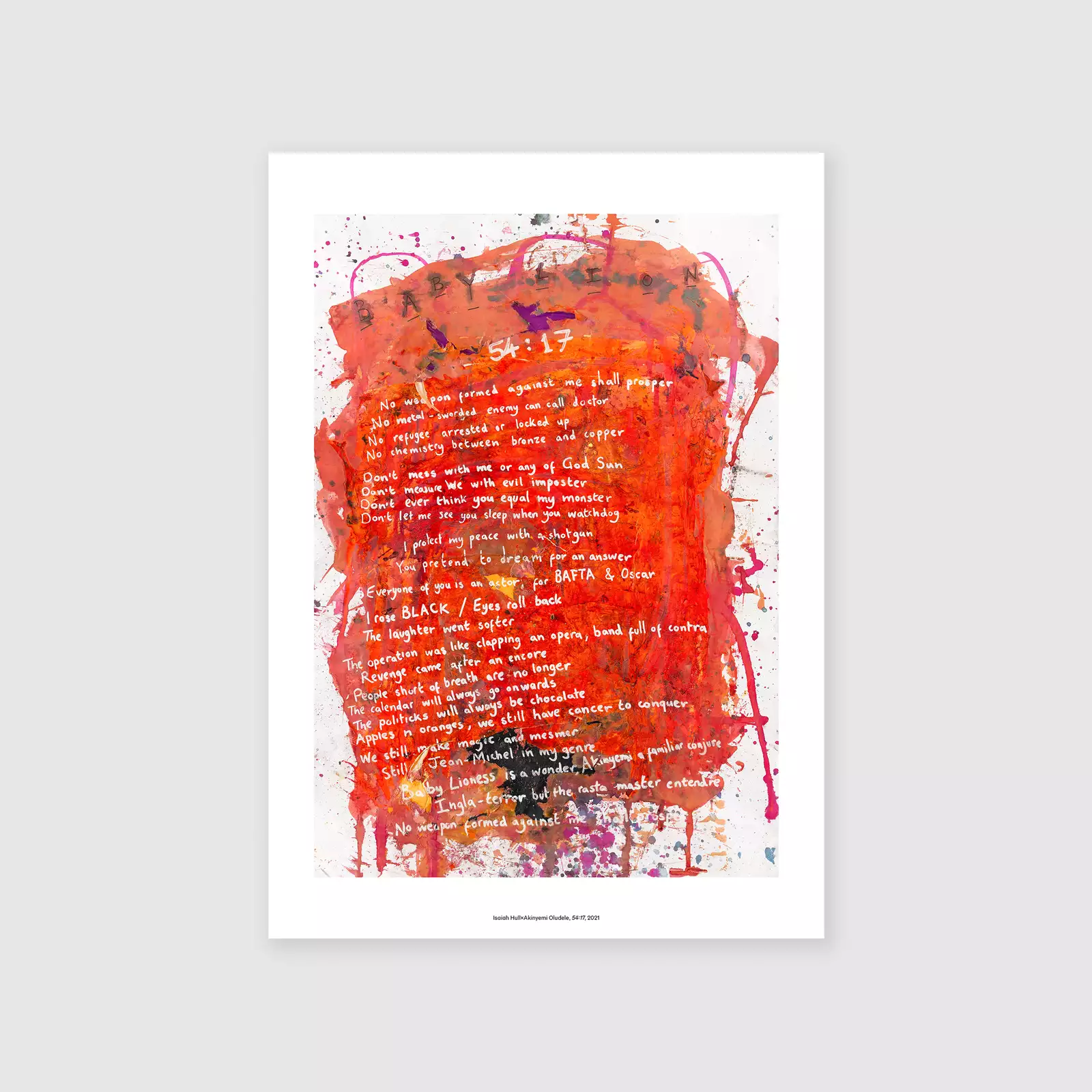 Isaiah Hull was one of the Roundhouse/Radio 1 Extra finalists in 2015 at the age of 18, having participated in Wordcup, a national youth slam run by Apples and Snakes. He is a member of Young Identity which was formed in Manchester’s Moss Side to encourage young adults and teenagers to express themselves through poetry. He has supported Kae Tempest, Lemn Sissay and Skepta. For this piece he has collaborated with artist Akinyemi Oludele.